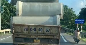 Thót tim cảnh xe tải chở cống bi cao như núi không chằng buộc an toàn tại Quảng Ngãi