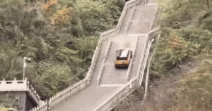 SUV Trung Quốc gặp sự cố trượt dốc làm hỏng lan can khi leo 999 bậc đá lên đỉnh núi