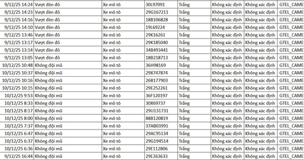 Qua hệ thống camera AI, hàng trăm trường hợp vi phạm được phát hiện rõ ràng với đầy đủ bằng chứng hình ảnh. Trong số đó, những lỗi phổ biến nhất bao gồm việc người điều khiển xe máy không đội mũ bảo hiểm và hành vi vượt đèn đỏ – những nguyên nhân gây ra nhiều vụ tai nạn đáng tiếc trên đường phố.